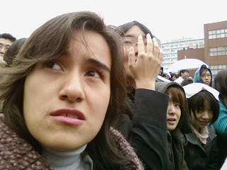 Ha habido un gran revuelo en mi universidad en los últimos días. Un día desaparecieron los camelios entre los cuales anidaban las arañas otoñales que parecían pender sobre nuestras cabezas a la entrada del edificio de mi facultad. Después Daniel, compañero de la clase de español que dicto los viernes, nos avisó que había sido invitado a conocer a los Reyes de España porque venían a Japón. Pasadas unas semanas, entendí que los camelios habían sido talados para eliminar posibles escondrijos de hipotéticos Gavrilos Princip, ya que Don Juan Carlos y Doña Sofía iban a pasar por la cafetería de nuestro bloque el miércoles, junto al Emperador Akihito y la Emperatriz Michiko. A falta de una pareja real en el campus, dos—y de países muy distintos.