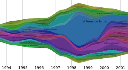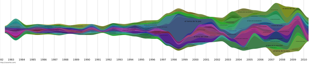 Para divertirme un poco hice varias gráficas en donde se pueden ver los temas más frecuentes durante los años, como esta: